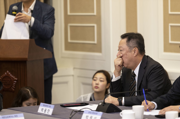 박용만 대한상공회의소 회장이 31일 오전 서울 여의도 국회에서 열린 제1차 일본수출규제대책 민·관·정 협의회 회의에 참석하고 있다.