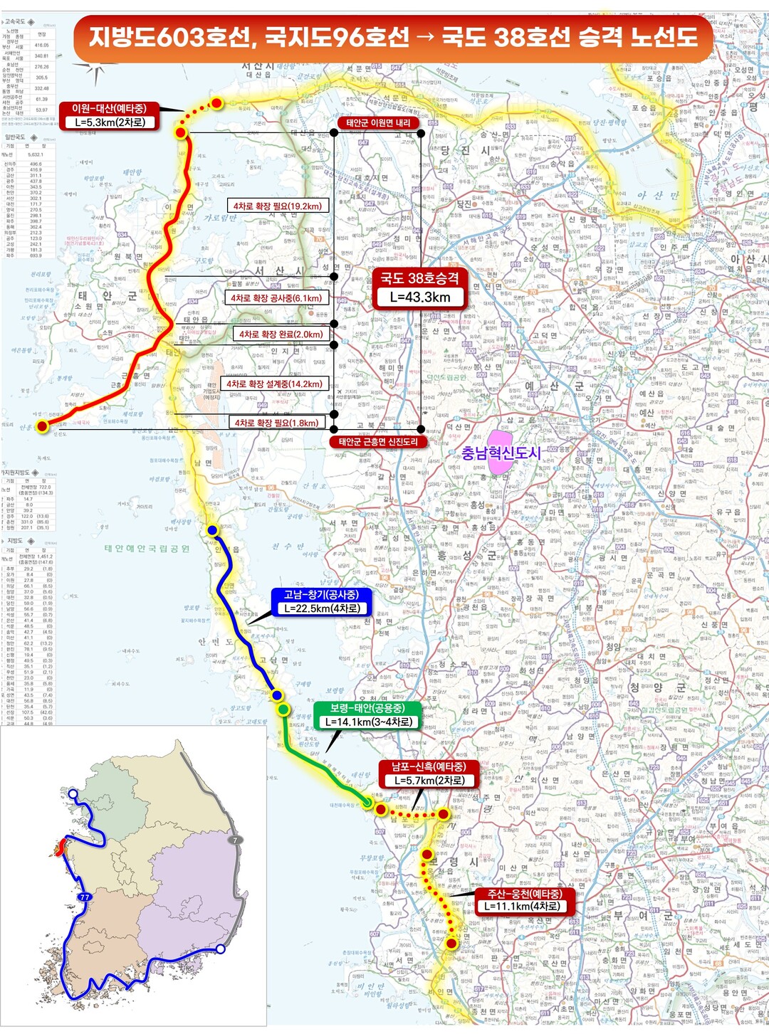 | ▲ 국도 38호선 승격 노선도. [충남도 제공] |
