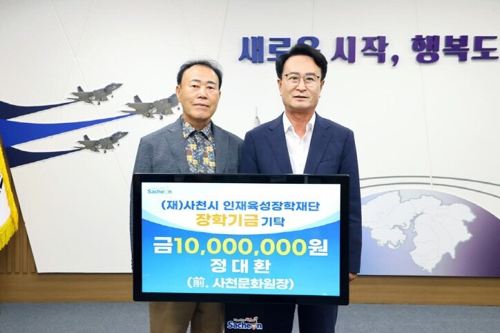 정대환 전 사천문화원장(제8·9대)은 28일 사천시인재육성장학재단(이사장 박동식 시장)에 1000만 원의 장학기금을 기탁했다.