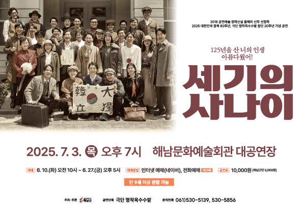 22일 전남 해남군에 따르면 이번 공연은 극단 창단 20주년을 맞아 광복 80주년을 기념해 재공연되는 작품으로, 지난 2019년 초연된 이후 6년 만의 무대다.