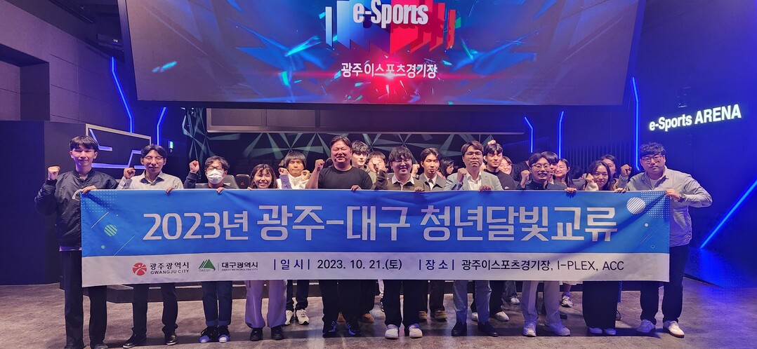 이날 광주청년위원회는 전국 최대 규모인 광주이스포츠경기장에서 대구 청년대표와 친선경기를 치르고 이스포츠 산업 허브도시 광주를 알렸다.