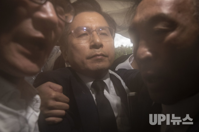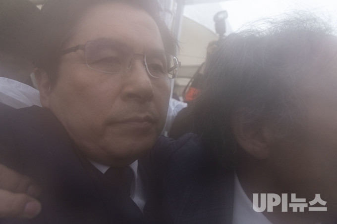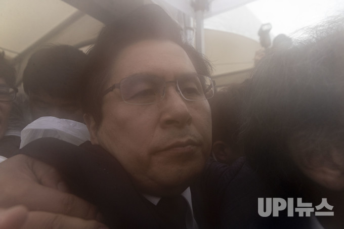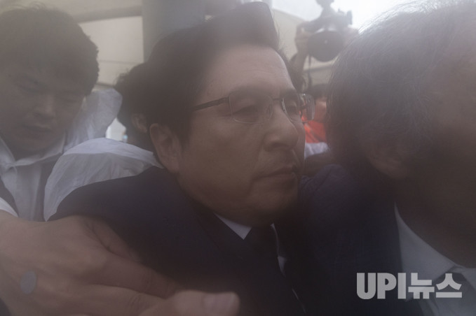 황교안 자유한국당 대표가 18일 오전 '5·18민주화운동 39주년 기념식'에 참석하기 위해 국립 5·18민주묘지 입구를 들어서려다 시민들로부터 거센 항의를 받고 있다. 둘러싸인 인파 열기로 카메라 렌즈에 김이 서렸다.