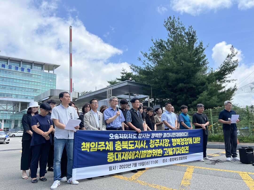 특히 이들 단체는 “이번 오송 참사가 ‘공중이용시설의 설계, 제조, 설치, 관리상의 결함으로 인한 중대시민재해’에 해당하지만 오송 참사의 책임자로 지목된 김영환 지사와 이범석 시장은 지금까지도 오송 참사 피해의 수습과 회복, 진상규명 책임자처벌, 재발방지의 노력을 뒷전이고 책임 떠넘기기와 기억 지우기에 전념하고 있다”며 규탄했다.