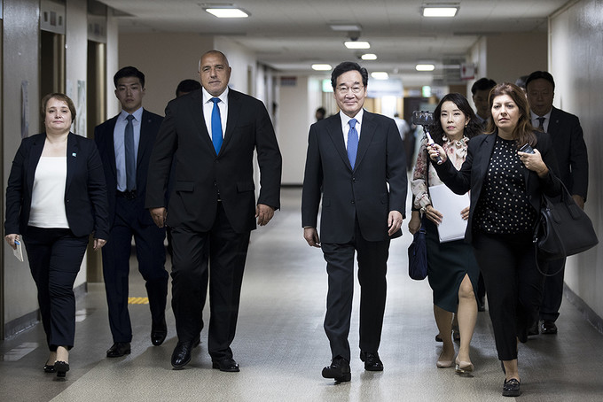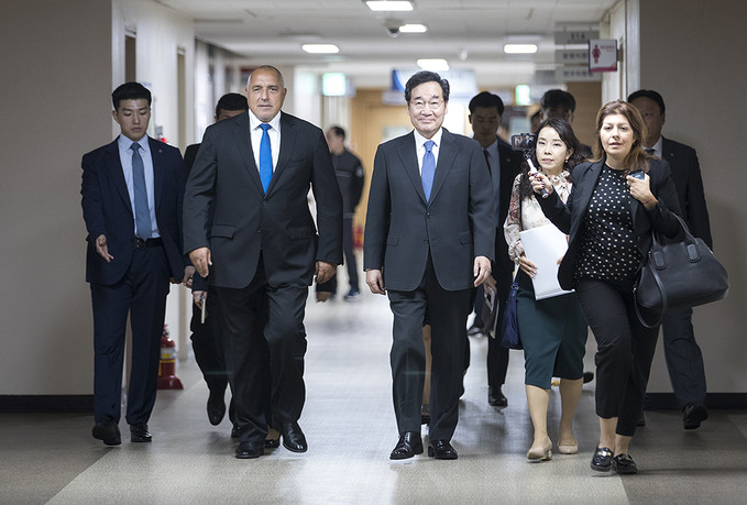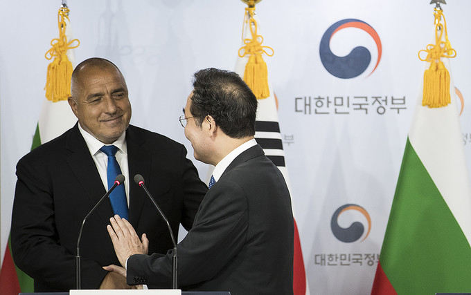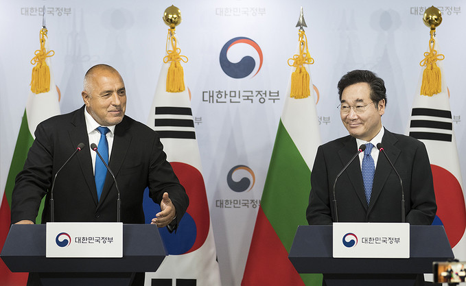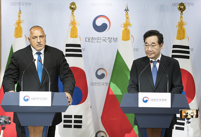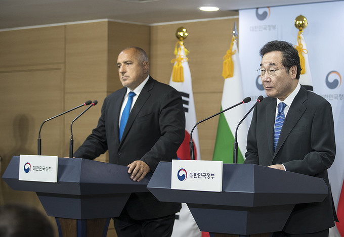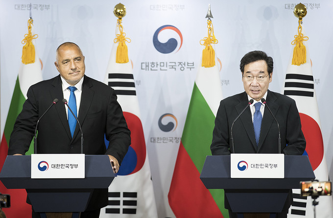 이낙연 국무총리와 보이코 보리소프 불가리아 총리가 26일 오전 서울 종로구 정부서울청사에서 열린 한-불가리아 공동기자회견에 참석하고 있다.