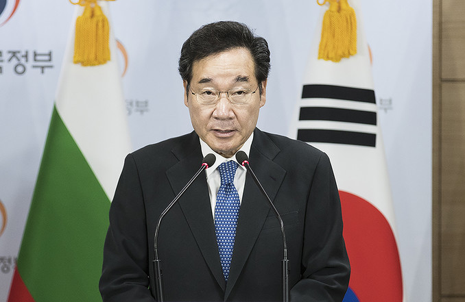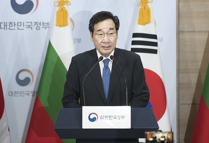이낙연 국무총리가 26일 오전 서울 종로구 정부서울청사에서 열린 한-불가리아 공동기자회견에서 모두발언을 하고 있다.