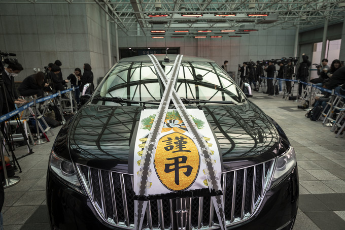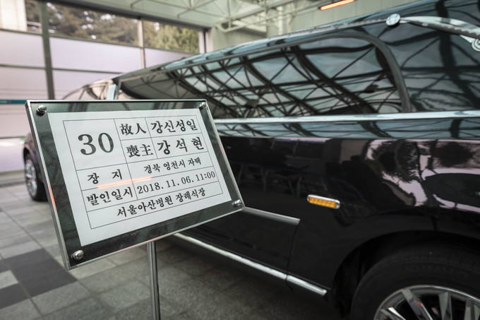 6일 오전 서울 송파구 서울아산병원 장례식장에서 거행될 국민배우 故 신성일의 발인을 앞두고 운구차가 서 있다.