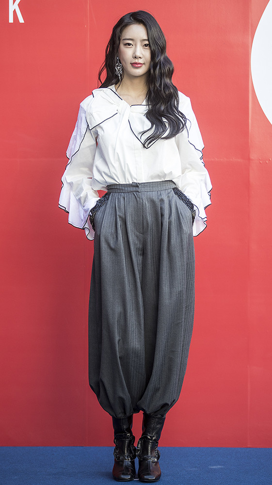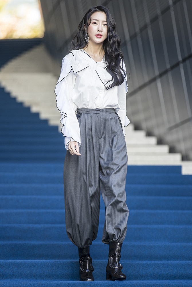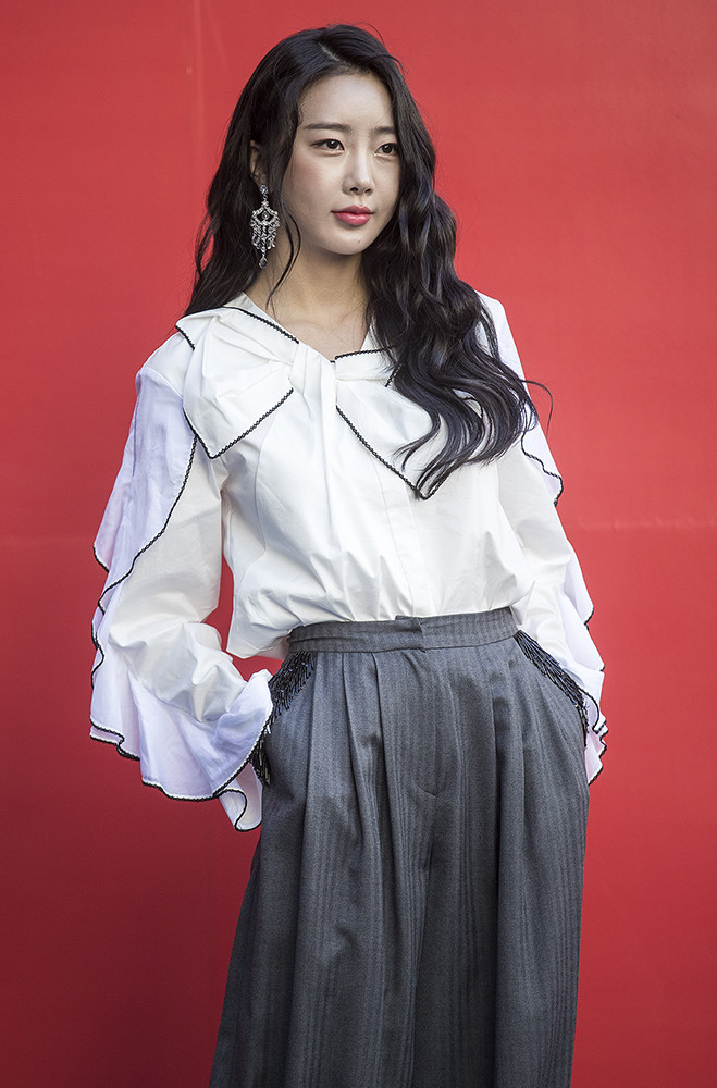 그룹 달샤벳 수빈이 19일 오전 서울 동대문디자인플라자(DDP)에서 열린 '헤라서울패션위크 S/S 2019' 로맨시크(ROMANCHIC) 패션쇼에 참석해 포토타임을 가지고 있다.