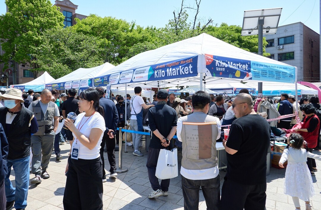 판매는 일정 금액 쿠폰으로 물품을 담는 '킬로마켓' 방식과 일부 품목을 정가로 판매하는 방식이 병행됐다. 이주민 방문객의 구매 접근성을 높이기 위한 구조다.