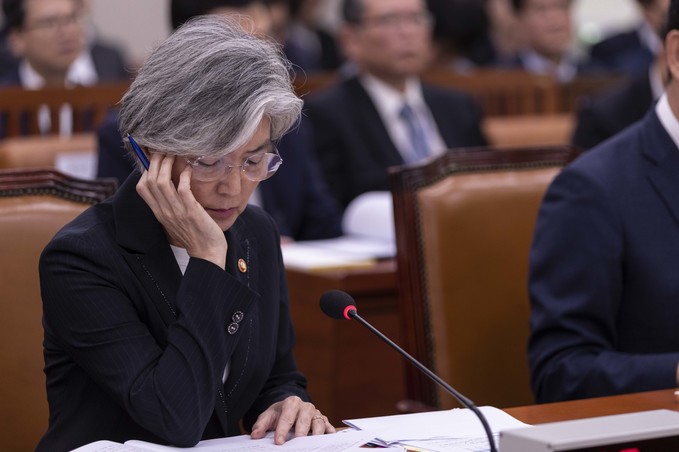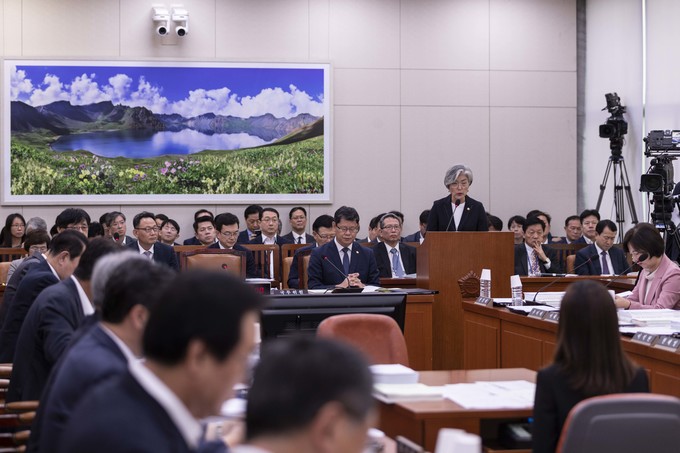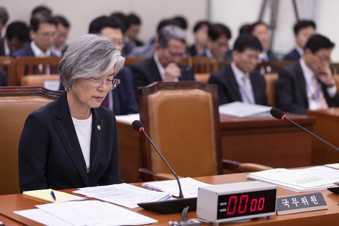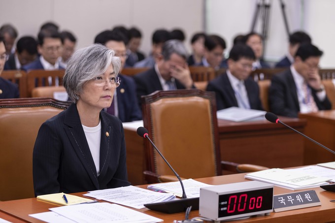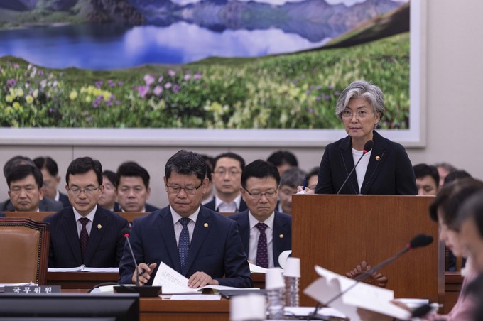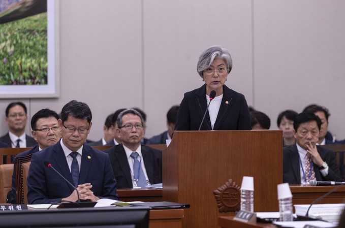 강경화 외교통상부 장관이 16일 오전 서울 여의도 국회에서 열린 외교통일위원회 전체회의에 출석해 업무보고를 하고 있다.