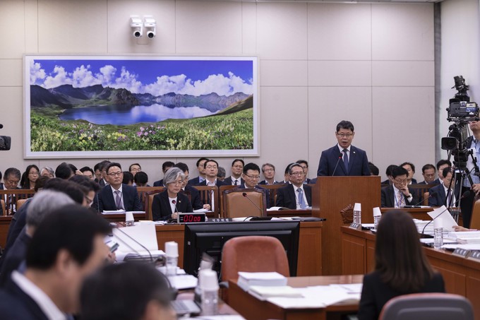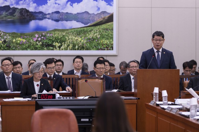 김연철 통일부 장관이 16일 오전 서울 여의도 국회에서 열린 외교통일위원회 전체회의에 출석해 업무보고를 하고 있다.