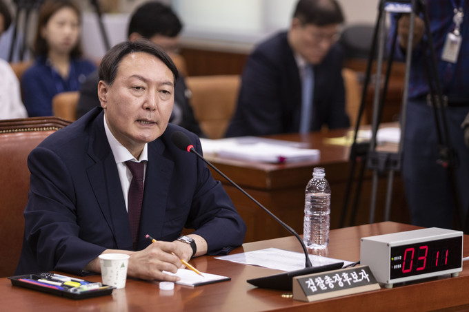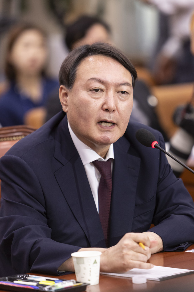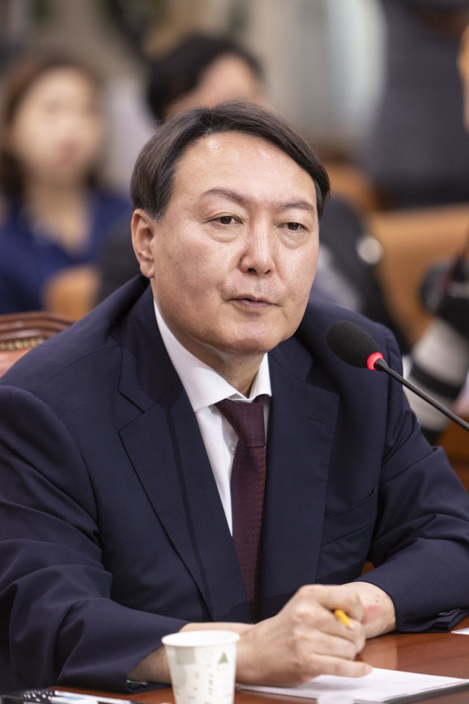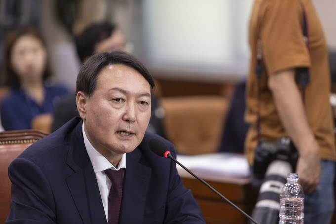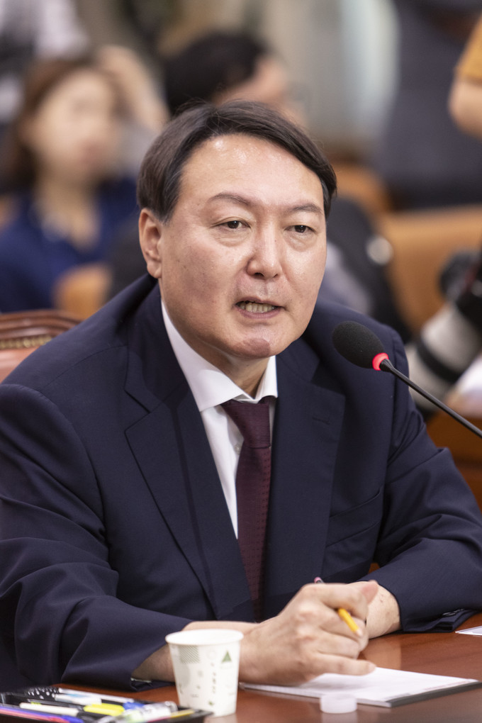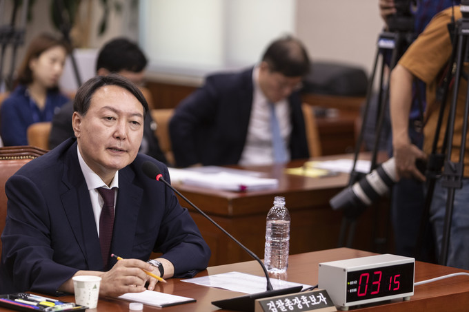 윤석열 검찰총장 후보자가 8일 오전 서울 여의도 국회에서 열린 검찰총장 인사청문회에 출석해 의원질의에 답하고 있다.
