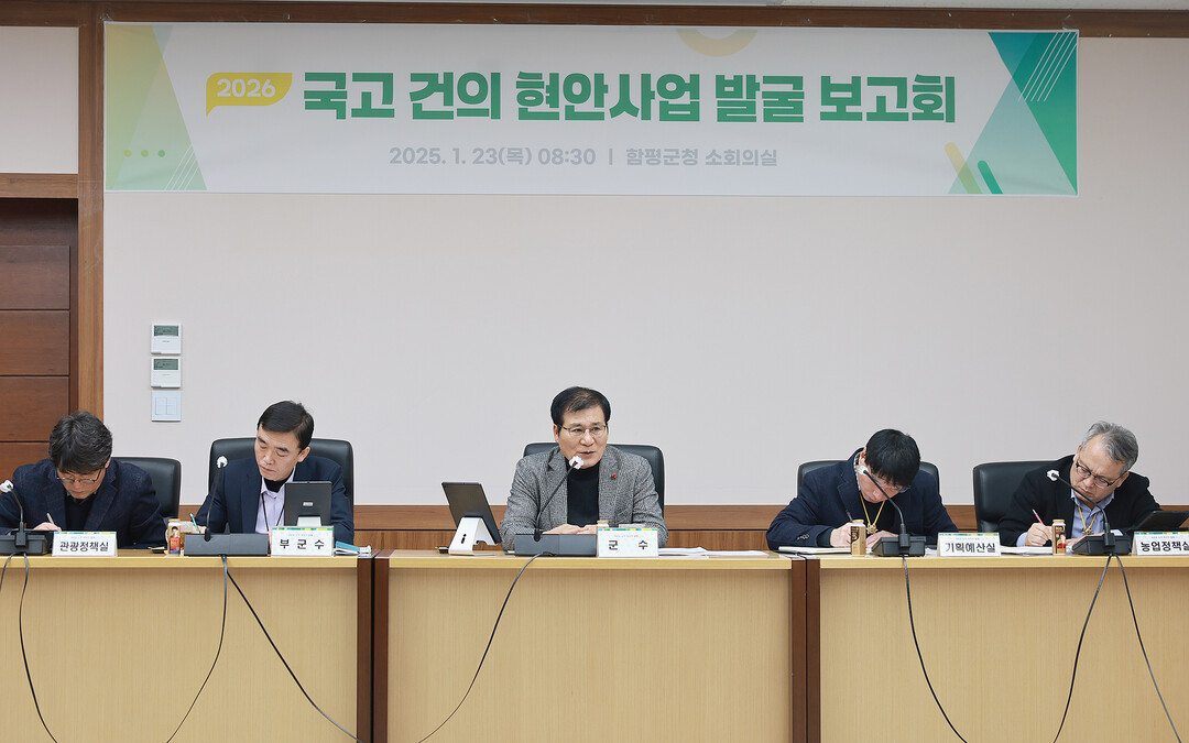2026년도 신규 국고 건의 사업은 △손불면 대전지구 풍수해생활권 종합정비사업(460억) △함평 해보 공공하수처리시설 증설사업(126억) △함평 빛그린산단 종합비즈니스센터 건립사업(114억) 등 20건이다.