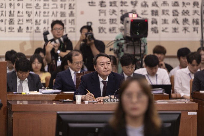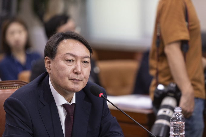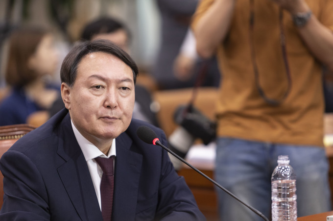 윤석열 검찰총장 후보자가 8일 오전 서울 여의도 국회에서 열린 검찰총장 인사청문회에 출석해 의원질의를 듣고 있다.