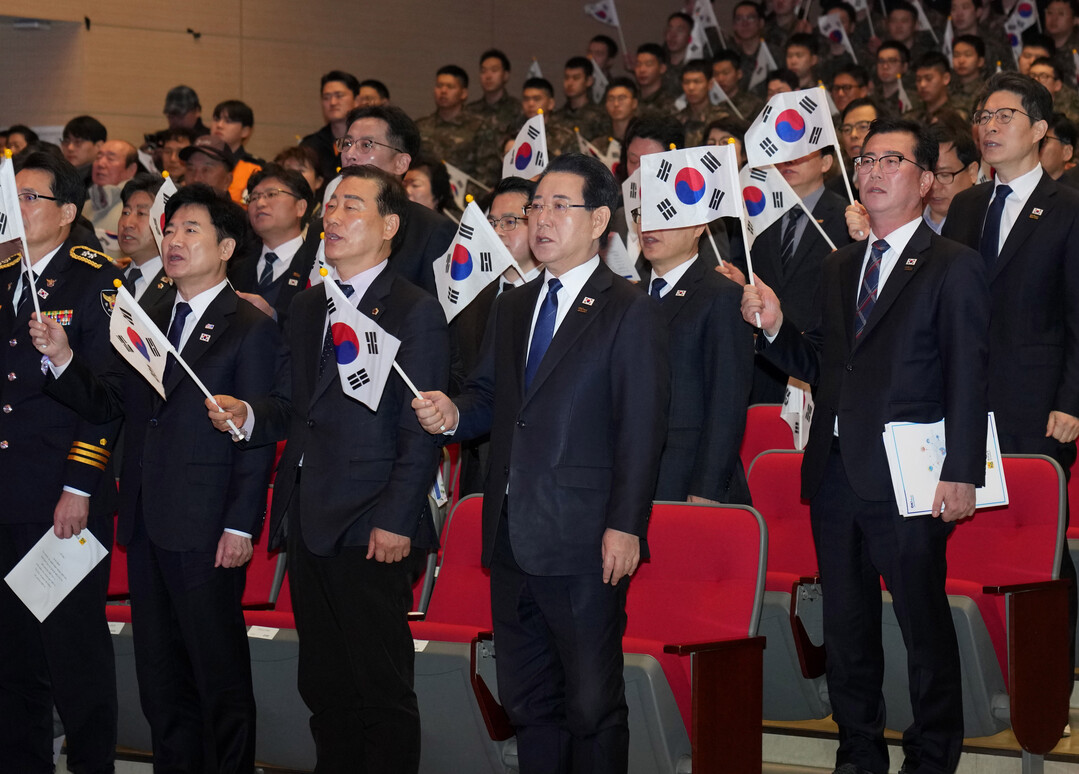 | ▲ 김영록 전라남도지사가 1일 전남도청 김대중강당에서 열린 '제107주년 3·1절 기념식'에서 참석자들과 삼일절 노래를 부르고 있다. [전남도 제공] |