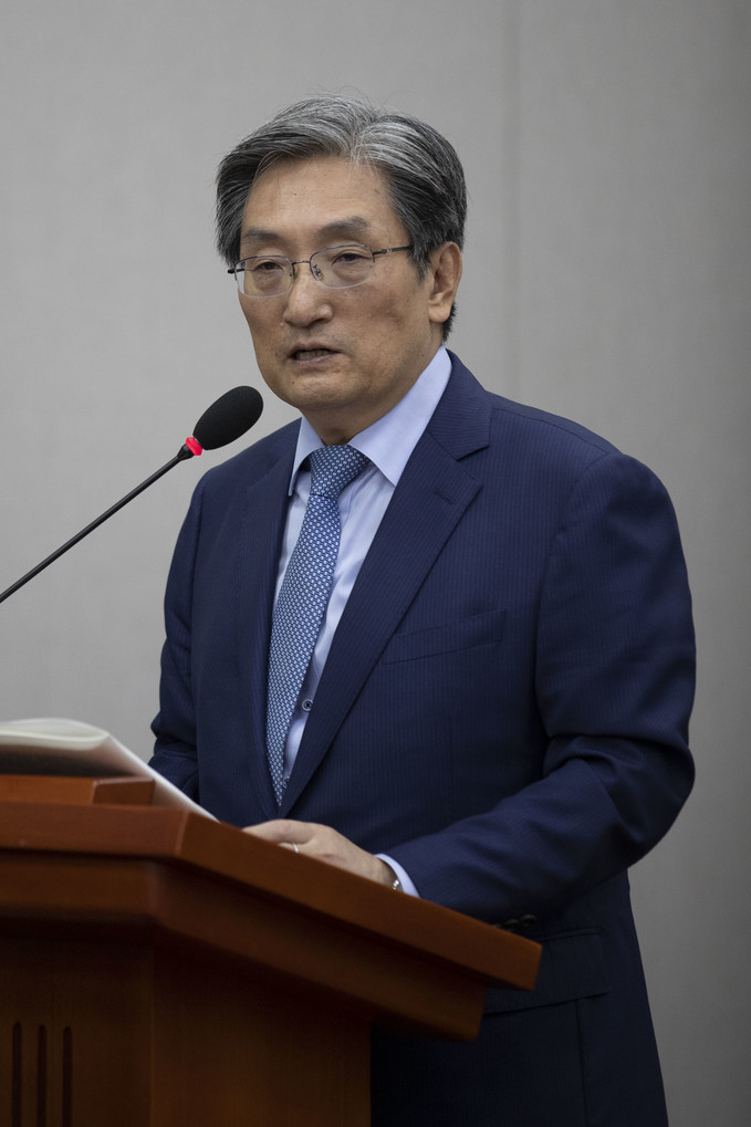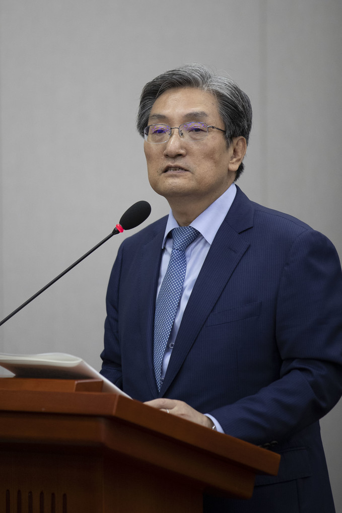 노영민 대통령비서실장이 6일 오전 서울 여의도 국회에서 열린 운영위원회 전체회의에 출석해 업무보고를 하고 있다.