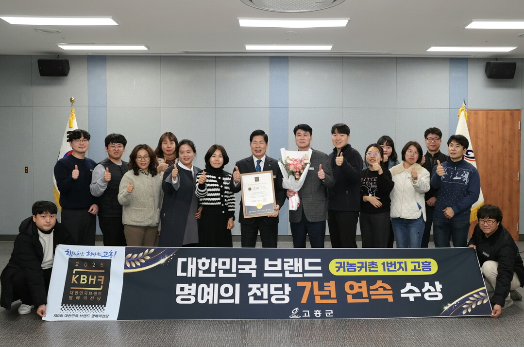 전남 고흥군이 '2025년 대한민국 브랜드 명예의 전당' 귀농귀촌 도시 부문에서 7년 연속 수상이라는 쾌거를 이뤘다.