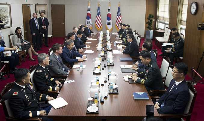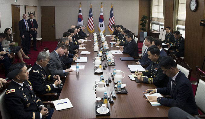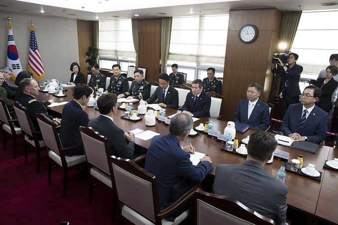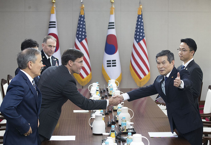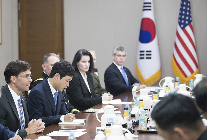 9일 오전 서울 용산구 국방부에서 정경두 국방부 장관과 마크 에스퍼 미국 신임 국방부 장관과의 한미 국방장관 회담이 열리고 있다.