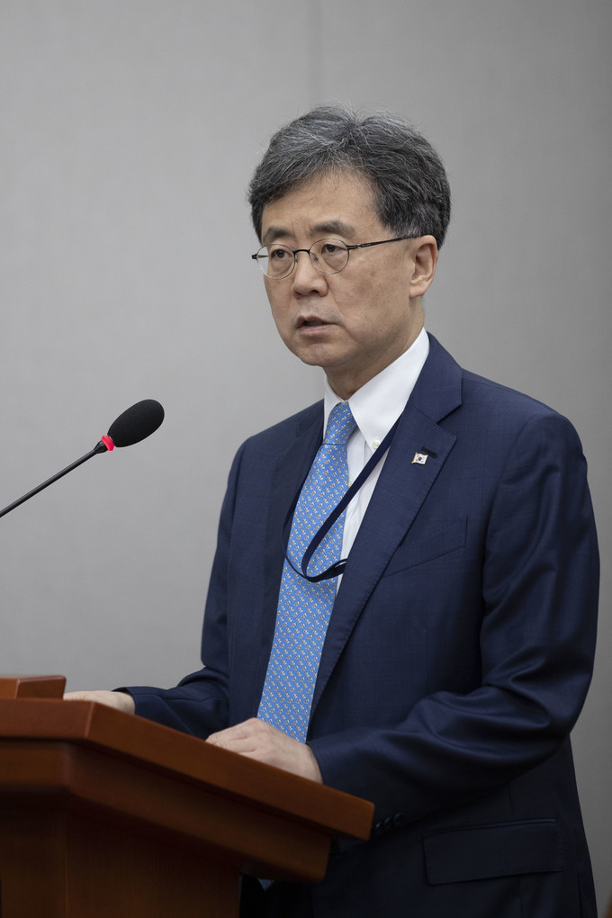 김현종 국가안보실 제2차장이 6일 오전 서울 여의도 국회에서 열린 운영위원회 전체회의에 출석해 업무보고를 하고 있다.