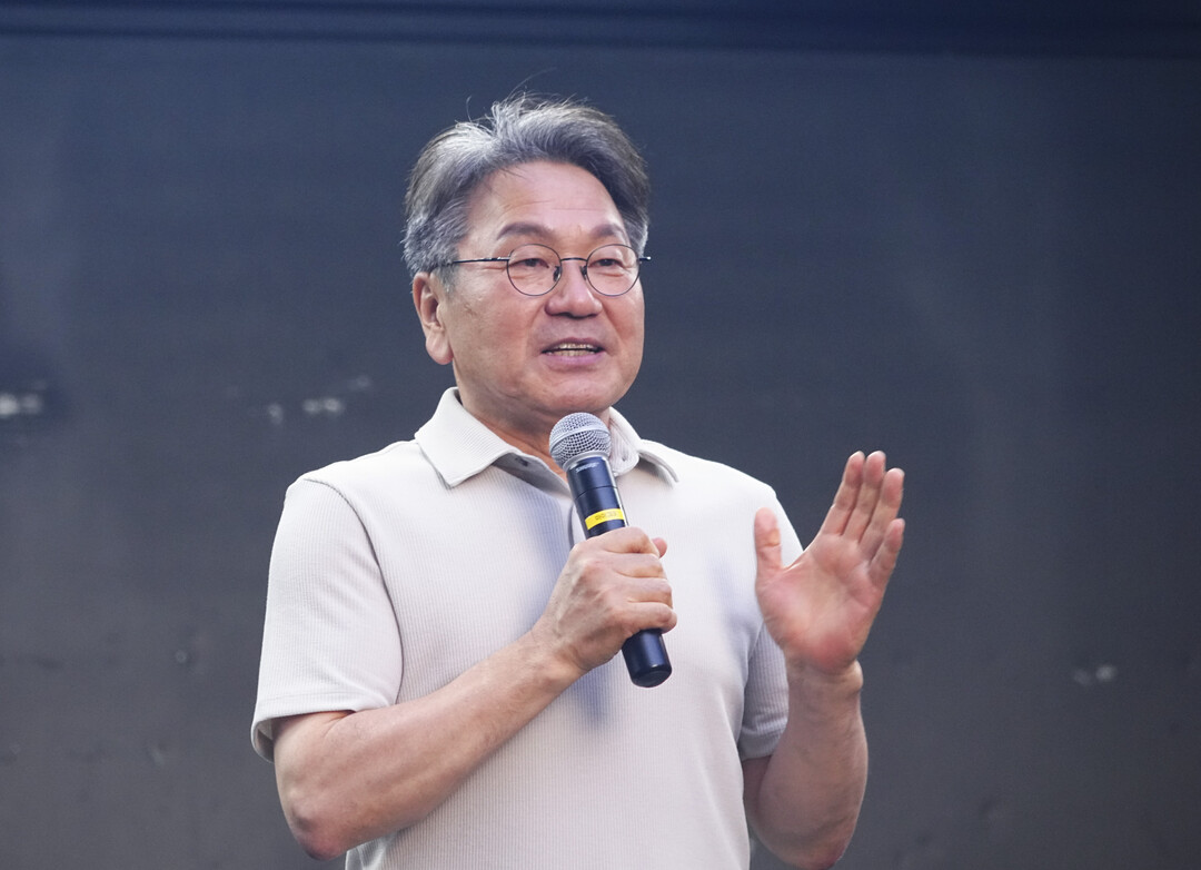 | ▲ 강기정 광주광역시장이 지난 5일 오후 동구 5·18 민주광장에서 열린 '광주2025현대세계(장애인)양궁선수권대회' 성공 개최 기원 시·도민 페스티벌 걷기행사에 참석해 축사를 하고 있다. [광주광역시 제공] |