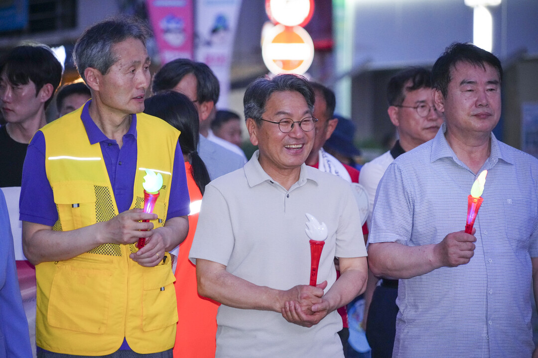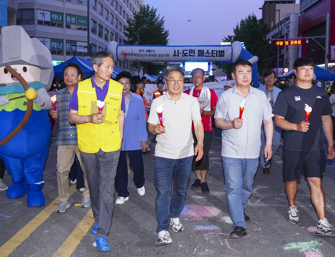 | ▲ 강기정 광주광역시장과 이정선 광주시교육감 등 지난 5일 오후 동구 5·18 민주광장에서 열린 '광주2025현대세계(장애인)양궁선수권대회' 성공 개최 기원 시·도민 페스티벌 걷기행사에 참석해 금남로와 충장로 일원을 걷고 있다. [광주광역시 제공] |