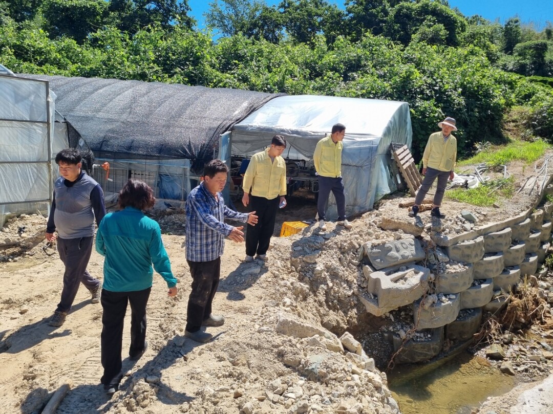 | ▲ 담양군이 집중호우로 가축 폐사와 축사 침수 피해를 입은 축산 농가를 방문하고 있다. [담양군 제공] |