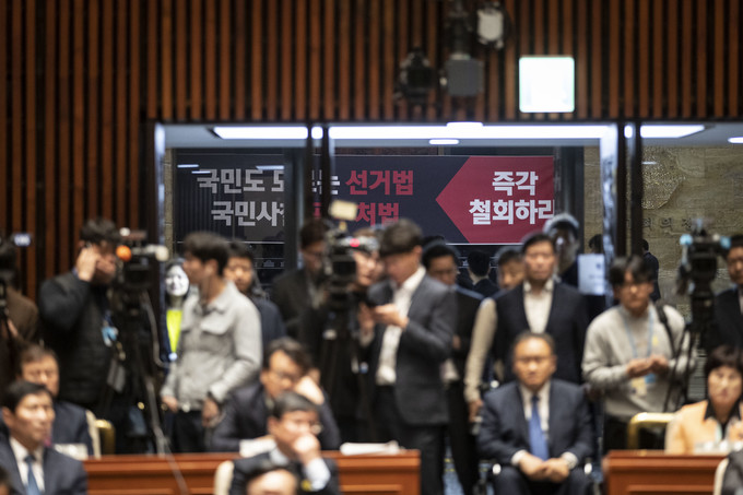 29일 오전 서울 여의도 국회 예결위회의장에서 더불어민주당 의원총회가 열리고 있다.