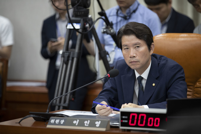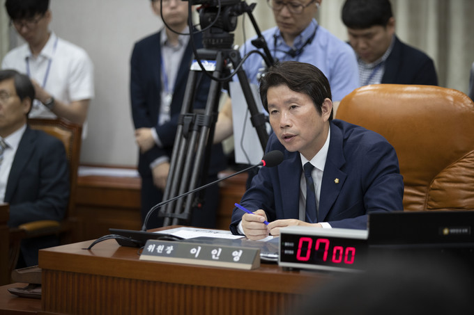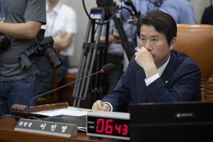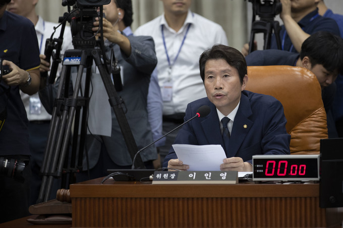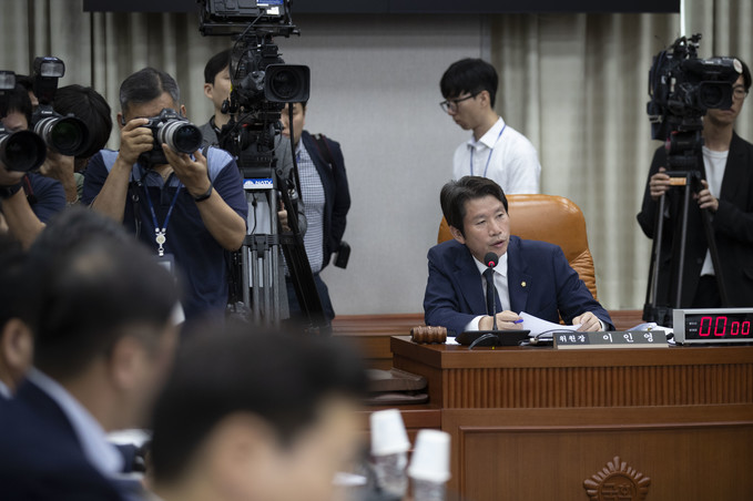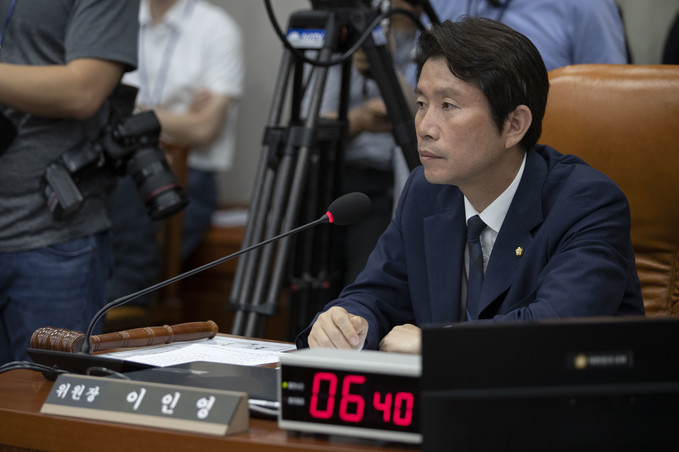 더불어민주당 이인영 위원장이 6일 오전 서울 여의도 국회에서 열린 운영위원회 전체회의를 주재하고 있다.