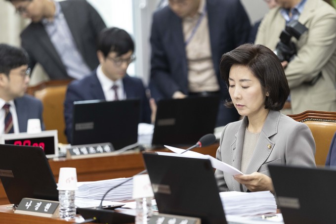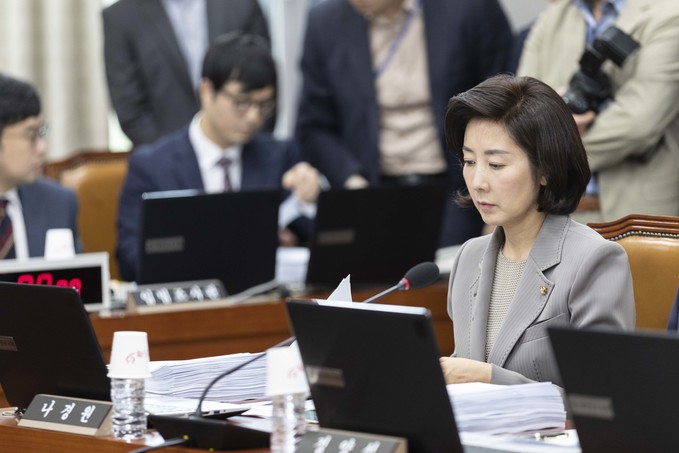 자유한국당 나경원 원내대표가 26일 오전 서울 여의도 국회에서 열린 운영위원회 전체회의에 참석하고 있다.