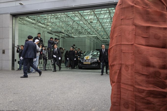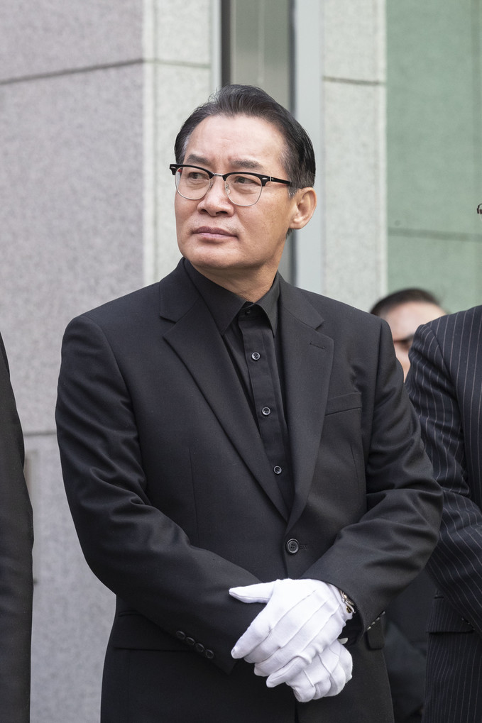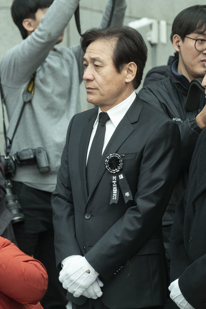 배우 독고영재가 6일 오전 서울 송파구 서울아산병원에서 거행된 배우 신성일의 발인식에 참석하고 있다.