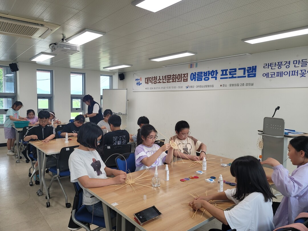 | ▲ 지난 7일부터 나흘동안 전남 장흥군이 대덕청소년문화의 집에서 청소년 40명을 대상으로 라탄공예, 에코페이퍼꽂 프로그램을 진행했다. [장흥군 제공] |