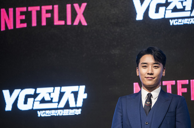 빅뱅 승리가 1일 오전 서울 종로구 JW매리어트호텔 동대문스퀘어에서 열린 넷플릭스의 신작 리얼 시트콤 'YG전자' 제작발표회에서 포즈를 취하고 있다. 'YG전자'는 하루 아침에 기피 1순위 부서인 'YG전략자료본부'로 좌천된 승리가 위기의 'YG엔터테인먼트'를 살려내고 다시 회장님의 품으로 돌아가기 위해 고군분투하는 리얼 시트콤이다.