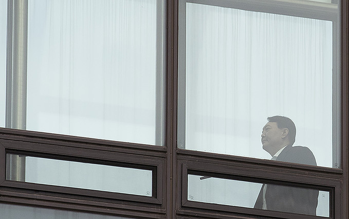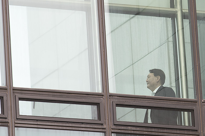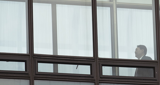 윤석열 검찰총장이 9일 오후 서울 서초구 대검찰청에서 점심식사를 위해 이동하고 있다. 문재인 대통령은 이날 조국 법무부 장관 후보자의 임명을 강행했으며, 검찰은 조국 법무부 장관 관련 '사모펀드 의혹'의 핵심 인물들에 대해 구속영장을 청구했다.