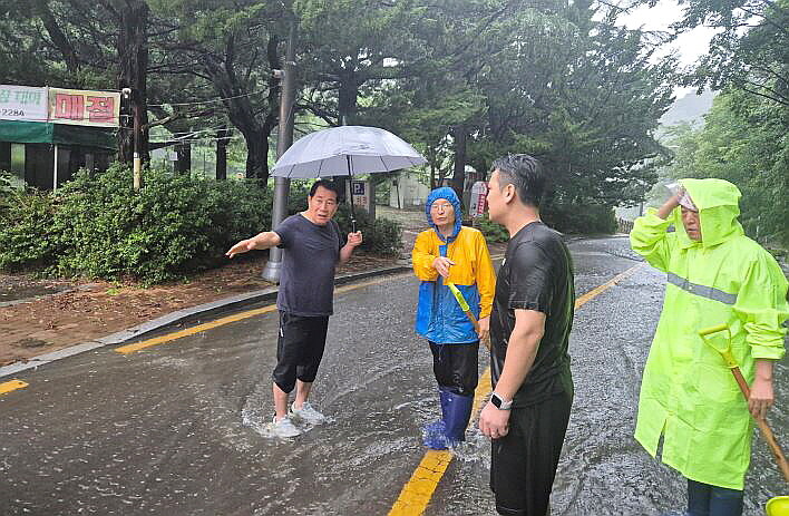 나동연 시장은 아침 5시 30분부터 직접 현장점검에 나섰다. 나 시장은 내원사 인근과 수위가 높아진 삼계교, 양산천 둔치, 남양산IC 등 주요 우려 지점을 차례로 점검했다. 현장점검을 마친 뒤 재난안전대책본부 상황실로 출근해 실시간 상황을 보고받으며 직원들을 격려했다.