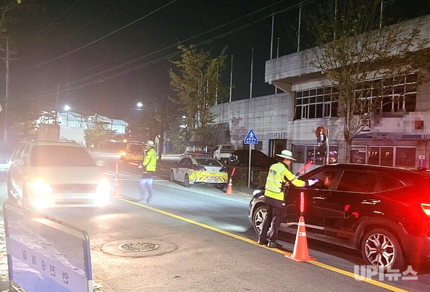 | ▲ 경찰이 28일 진주시 이현동 공설운동장 앞에서 음주운전 단속을 벌이고 있다. [경남경찰청 제공] |