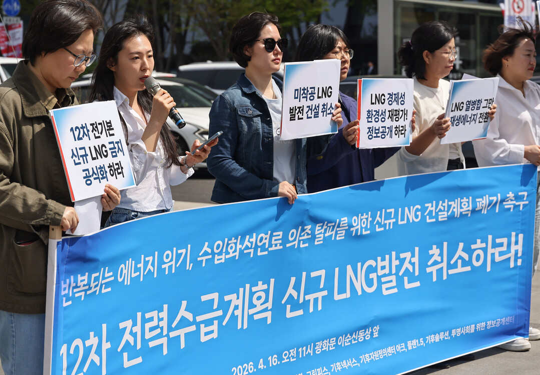 발언에 나선 배슬기 환경운동연합 활동가는 "해마다 막대한 비용을 해외 연료 수입에 지출하며 전력 가격 불안을 키우는 LNG 투자 대신, 태양광과 풍력 등 재생에너지로의 전환이 시급하다"며 "지정학적 위기가 상시화되는 국제정세 속에서 근본적인 에너지 전환 기회를 놓친다면 에너지 위기는 반복될 수밖에 없다"고 강조했다.