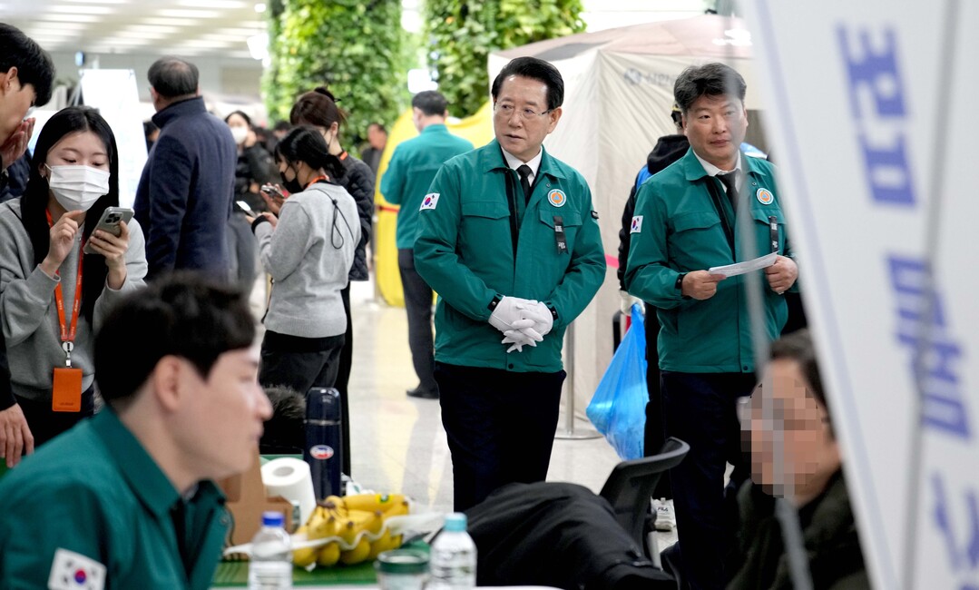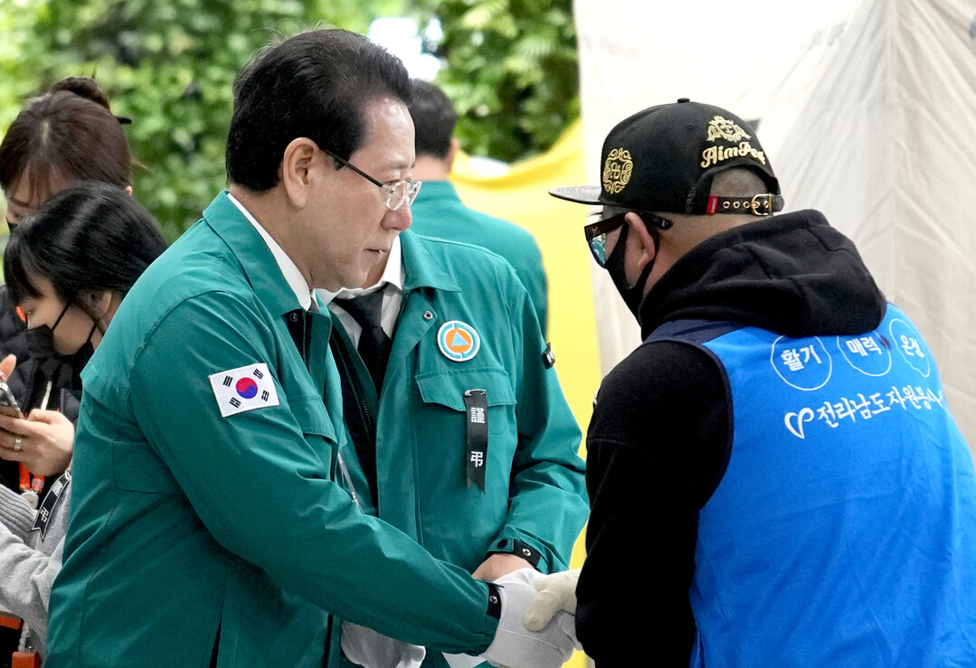 | ▲ 2일 오전 김영록 전라남도지사가 무안공항에서 제주항공 여객기 사고 희생자 유가족 등 도움이 필요한 사람들을 위해 자원봉사를 하고 있는 봉사자를 격려하고 현장을 둘러보고 있다. [전남도 제공] |