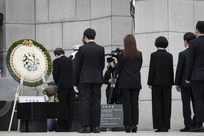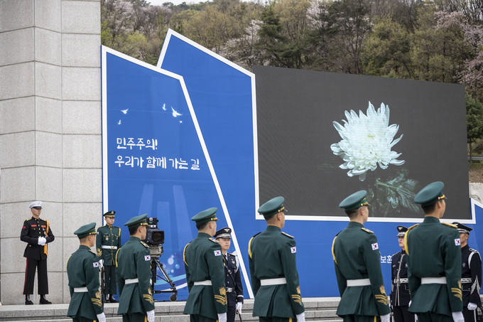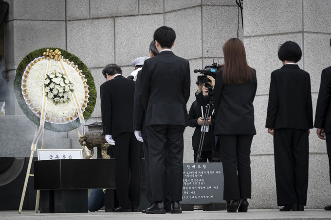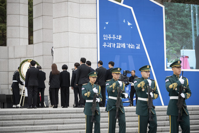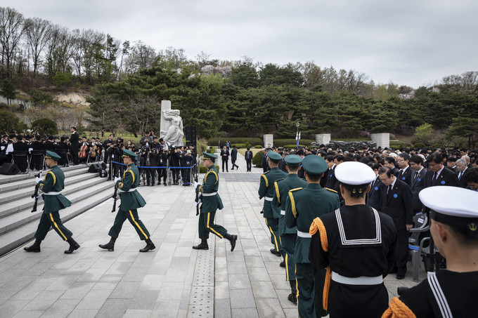 이낙연 국무총리가 19일 오전 서울 강북구 국립 4.19 민주묘지에서 열린 제59주년 4.19혁명 기념식에 참석해 헌화를 하고 있다.