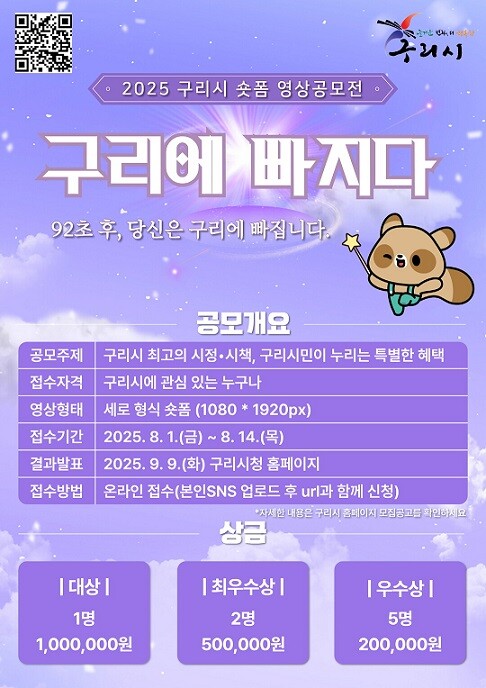 구리시가 시민과 소통하는 도시의 일환으로 2025 숏폼 영상 공모전 '구리에 빠지다'를 개최한다.