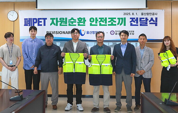 울산항만공사(UPA)는 1일 공사 회의실에서 폐(廢)페트병을 재활용해 만든 친환경 안전조끼 1200벌을 울산항운노동조합에 전달했다고 밝혔다.