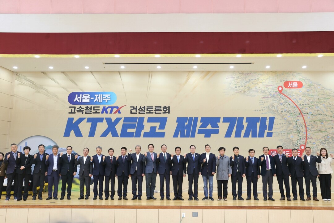 전남 해남과 완도를 거쳐 제주로 이어지는 고속철도 교통망 구축 논의를 위한 서울-제주 고속철도 건설 토론회 ‘KTX 타고 제주가자!’가 지난 17일 해남 우슬동백체육관에서 개최됐다.