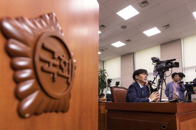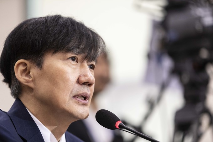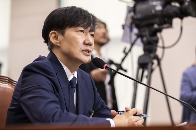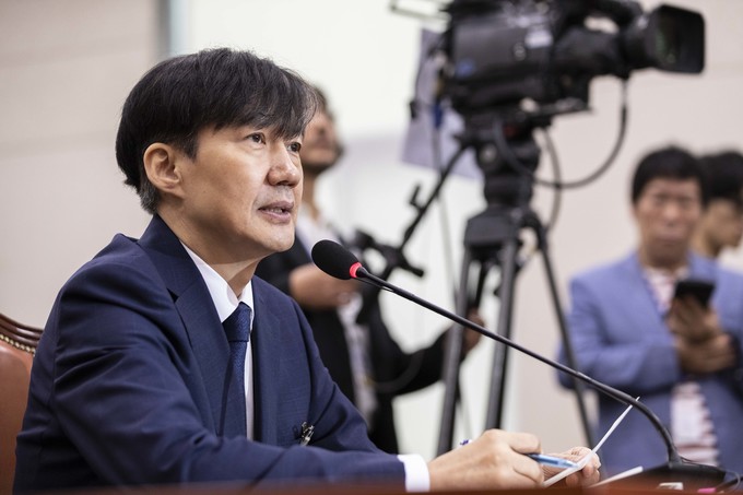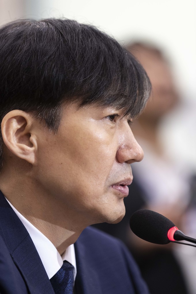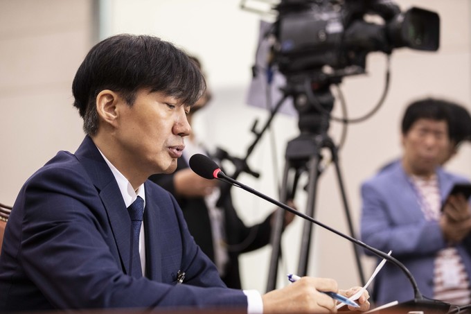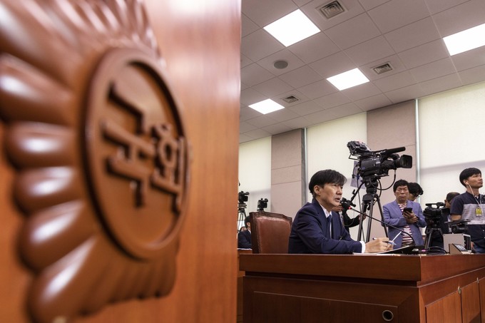 조국 법무부 장관 후보자가 6일 서울 여의도 국회에서 열린 법무부장관 인사청문회에 출석해 의원 질의에 답하고 있다.