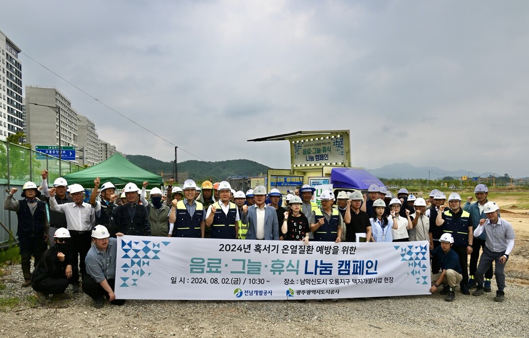 전남개발공사는 광주광역시도시공사와 함께 지난해 체결된 협약을 토대로 '3GO(음료‧그늘‧휴식) 나눔' 캠페인을 실시하고, 음료 차량과 물품(쿨토시, 쿨스카프 등) 지원, 온열질환 3대 예방수칙 교육 등 홍보 활동을 벌였다.