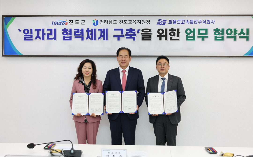 전남 진도군과 씨월드고속훼리(주) 진도교육지원청 등 3개 기관이 지역 일자리 창출과 지역 인재 채용을 위한 업무협약을 체결했다고 3일 밝혔다.