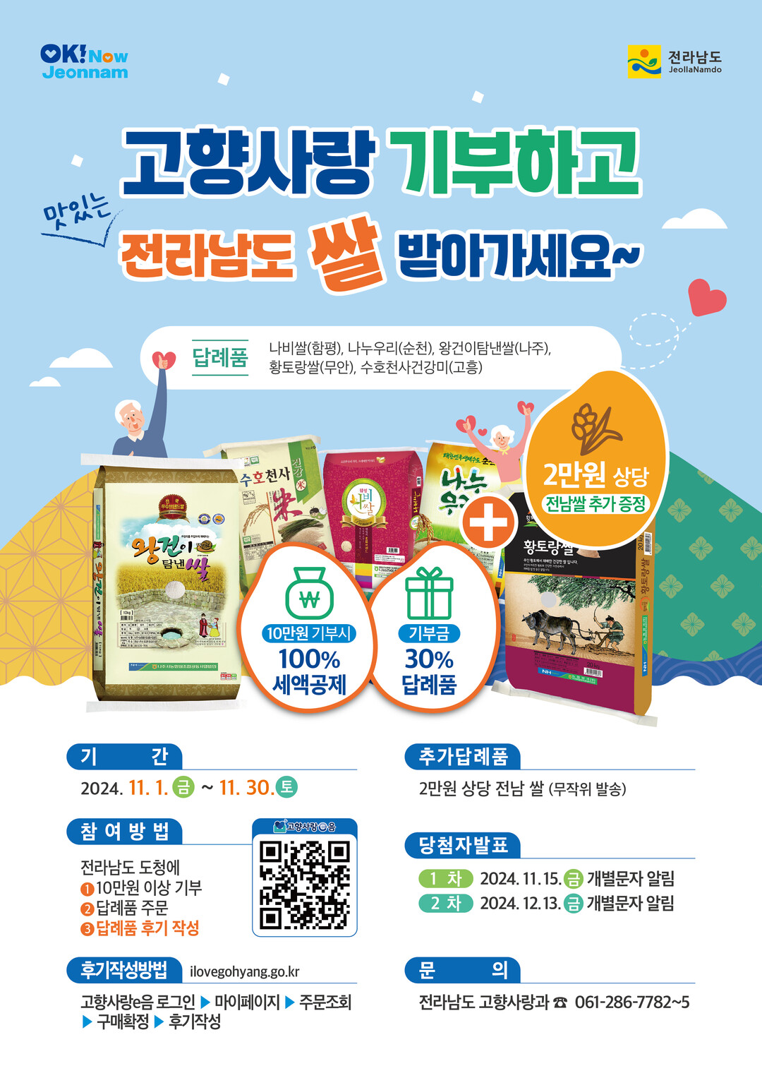 이번 이벤트는 전남도에 10만 원 이상 기부한 기부자가 고향사랑e음에서 답례품을 수령한 다음 후기를 작성하면 2만 원 상당의 전남 햅쌀을 추가로 증정한 행사였다.