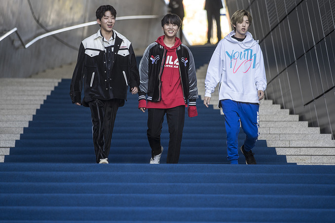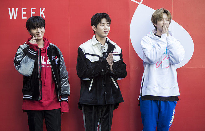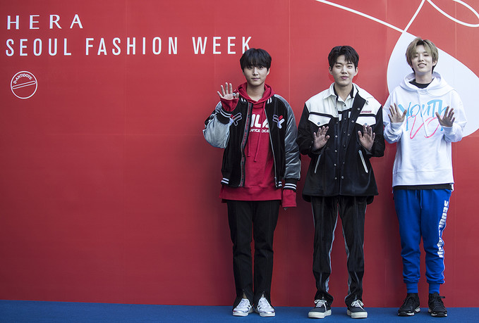 그룹 데이식스 제이, 도운, 영케이가 19일 오전 서울 동대문디자인플라자(DDP)에서 열린 '헤라서울패션위크 S/S 2019’ 디앤티도트(D-ANTIDOTE) 패션쇼에 참석해 포토타임을 가지고 있다.