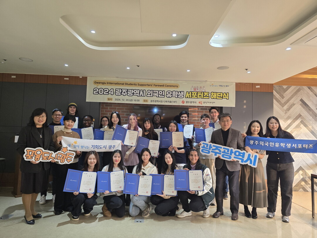 광주광역시가 지난 20일 '2024년 광주 외국인유학생 서포터즈 해단식'을 열고 10개월 간의 활동을 마무리했다고 22일 밝혔다.