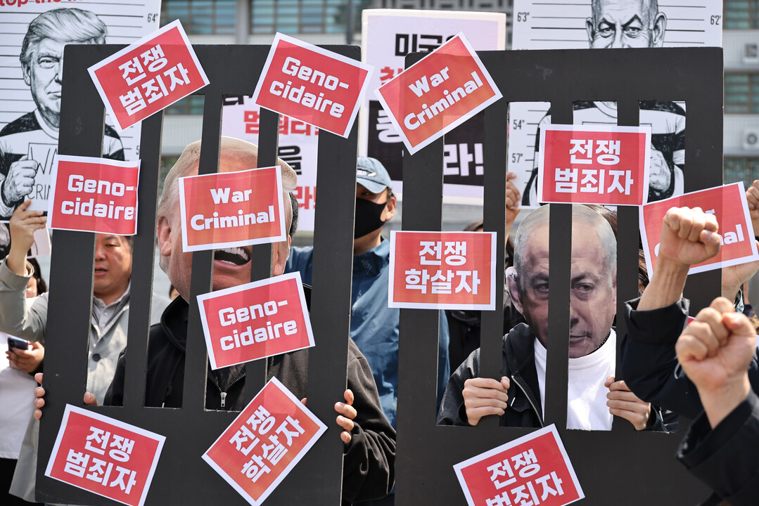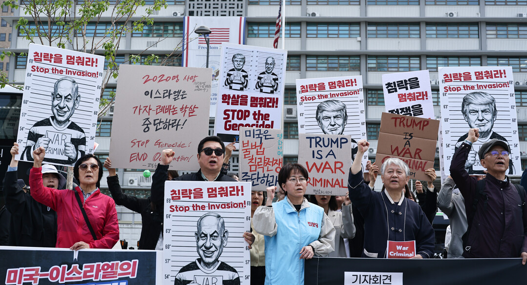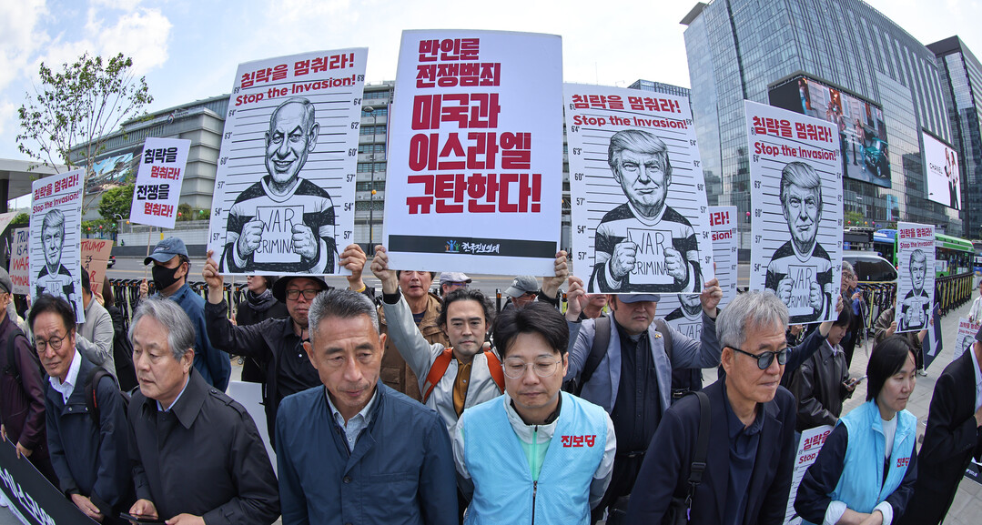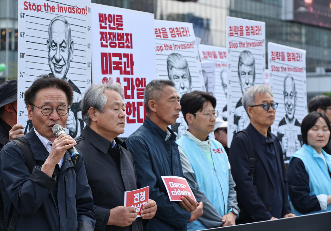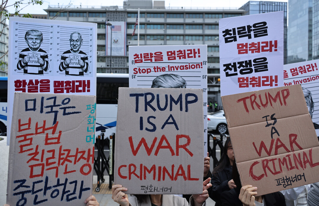 전국민중행동 등 시민단체들이 주최한 이날 행사에서 참가자들은 기자회견과 인간띠 잇기를 통해 양국의 군사행동을 규탄하고 즉각적인 종전을 촉구했다.