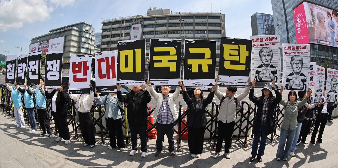 | ▲ 전국민중행동 등 시민단체들이 29일 오전 서울 종로구 주한미국대사관과 주한이스라엘대사관 인근에서 '평화의 인간띠 잇기' 행사를 열고 미국과 이스라엘의 이란 침공을 규탄했다. [이상훈 선임기자] |