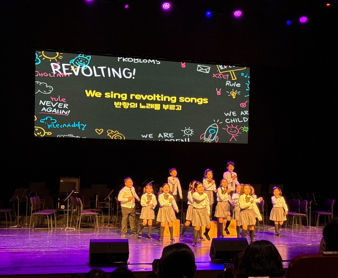 | ▲ 영덕문화예술축제 현장에서 '영덕하모나이즈' 어린이들이 영어 뮤지컬 한 장면을 공연했다. [영덕문화관광재단 제공] |
