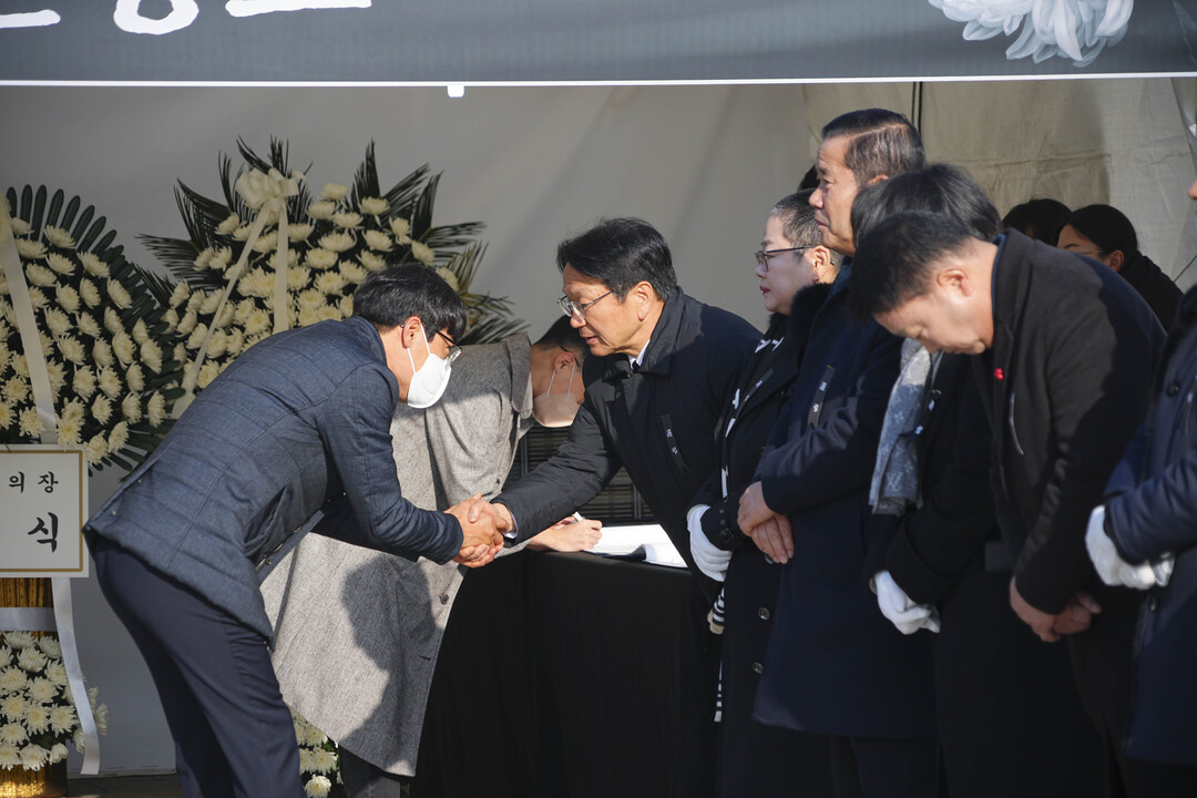 | ▲ 강기정 광주광역시장이 2일 오전 동구 5·18민주광장에 마련된 제주항공 여객기 참사 합동분향소를 찾은 시민들과 인사하고 있다. [광주광역시 제공] |